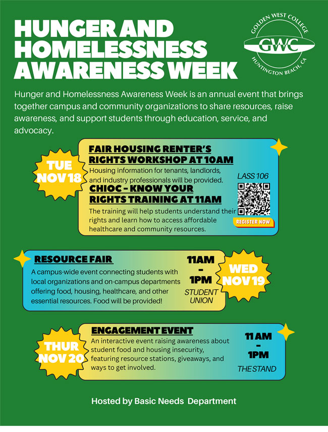 A campus-wide event connecting students with local organizations and on-campus departments offering food, housing, healthcare, and other essential resources.
